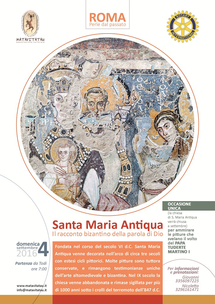 In occasione del decennale (2006-2016), l’Associazione Culturale Matavitatau in collaborazione col Rotary Club di Todi, propone un itinerario che permette di scoprire due “perle del passato” in cui si coniugano antichità romana, persistenze dall’antico e pregevoli testimonianze dell’arte altomedievale e bizantina.